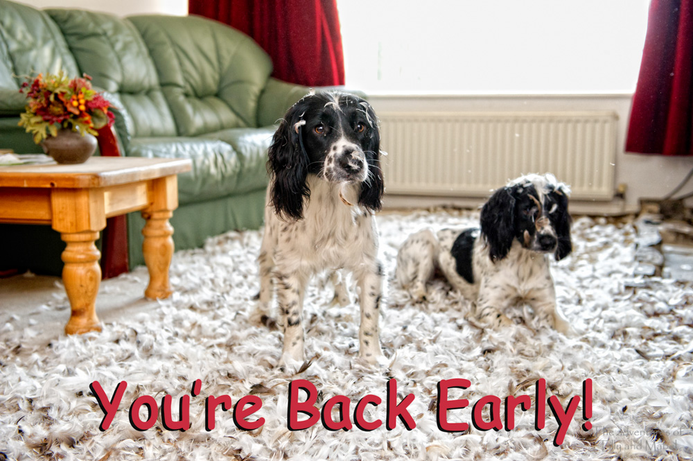 The generous spaniels saw her endeavors, and, as they were kind of heart came to her rescue, with the older of the two kindly picking up the second ball and carrying it for her. This vexed the coveting spaniel exceedingly, upon which she dropped the first tennis ball and proceeded to chase Tilly around a tree.